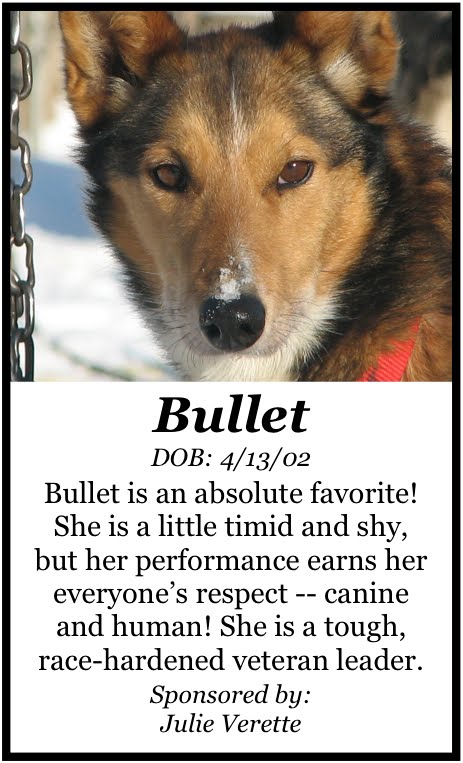On your second viewing of this video, you can see another good example of individuality if you look at Teddy, the leaping swing dog right behind Skittles and Bullet. Keep in mind that Teddy is an 8 1/2 year old dog, a truly seasoned veteran, who is so nonchalant around the Kennel that you might wonder if she knows she’s a sled dog. The moment you put her in harness, however, she starts acting like a yearling again, leaping and barking to get going. Dogs… go figure!