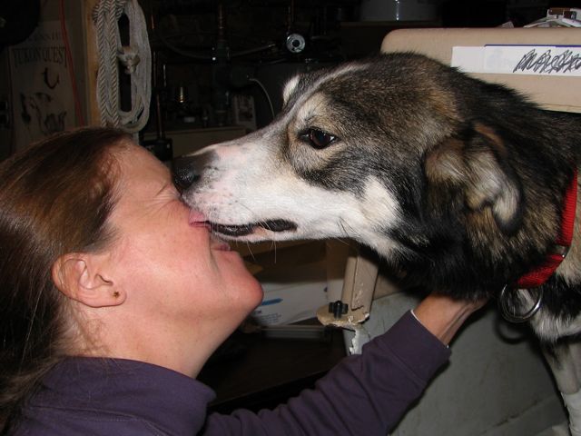 Despite his own uncertainty, our big, sweet boy Cutter did his best to console Jan and thank her for all the good care!