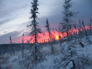 This is a sunset photo (not computer enhanced) from the back of a dog sled