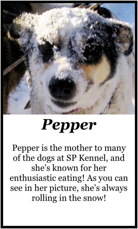 Hello Ms Olson. I am a fan of SP Kennel. I predicted 5 dogs correctly from your team. It was tricky picking Sissy, Scooter and Pepper! This was because I didn't know that Pepper was a racing dog, and I didn't think that yearlings would be talented enough for a race like this. I hope Pepper doesn't do too much snow-rolling along the way. Good luck for this race. You did so well in the Burger Race. I'll be following your progress along the trail.