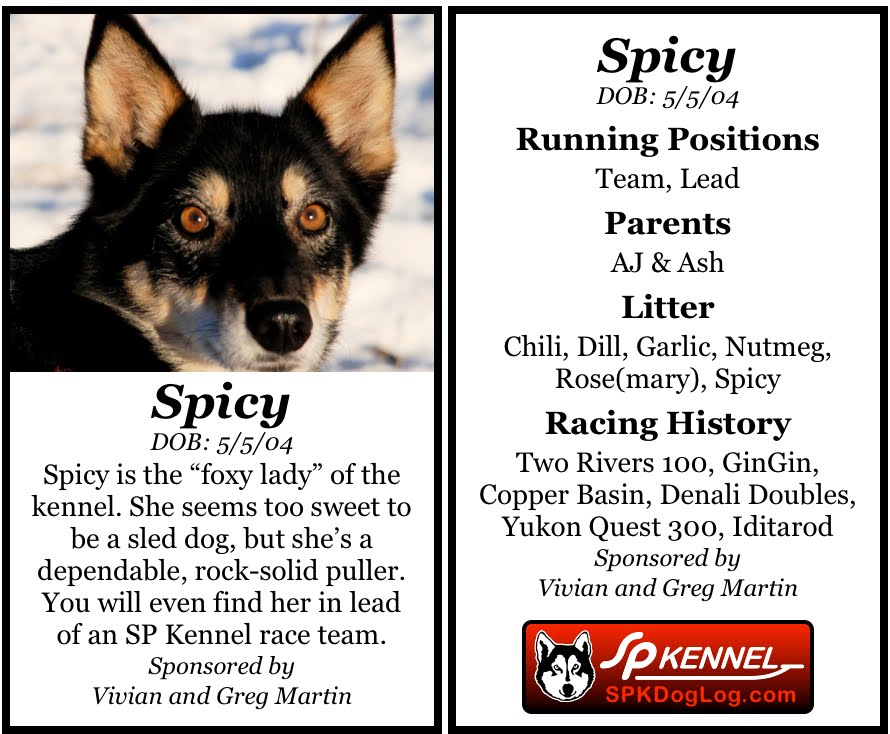 Unfortunately, Vivian and Greg won’t be at the Iditarod start this year to cheer Spicy on, but hopefully she’ll see them in years to come!