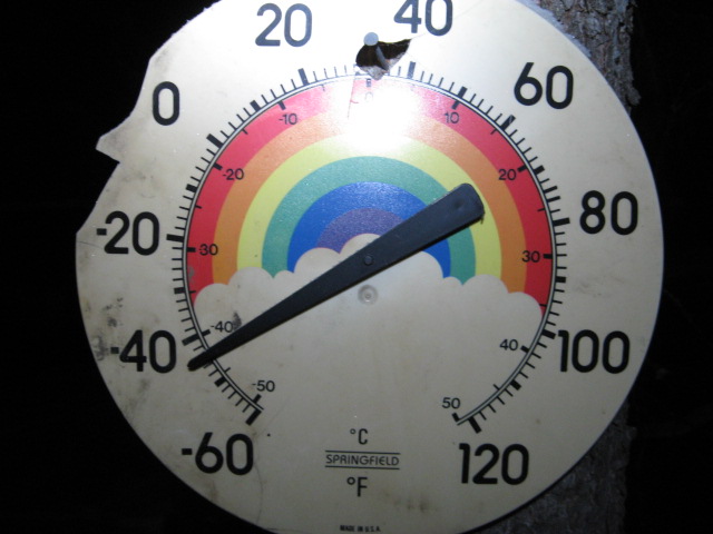 There was no dog training today. The mercury did rise above the 44 below shown above, but not by much.