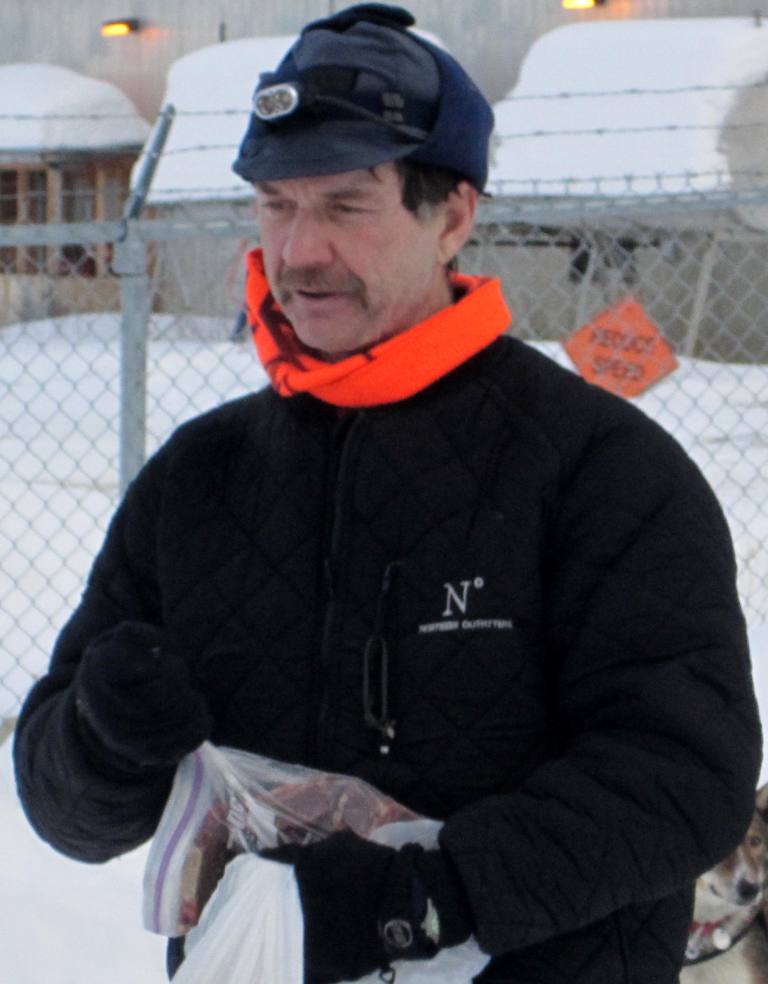 the team. Our two dropped dogs, Schmoe and Pud, are doing well also. They have been sleeping in their boxes where it is very warm. They have slept and eaten most of the day for a fast recovery. We’ll see Allen and the team again for a mandatory 8 hour layover at Braeburn Lodge. The sweet rolls are supposed to be world famous so we’ll look forward to those as we wait for Allen to roll in.
