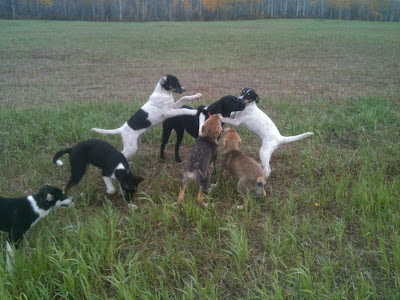 Fascinating to see the difference between the alert look on Outlaw's face in previous message (altho' I realize this is perhaps a trait from ChaCha)and the happy, childlike play of pups from Golf litter!