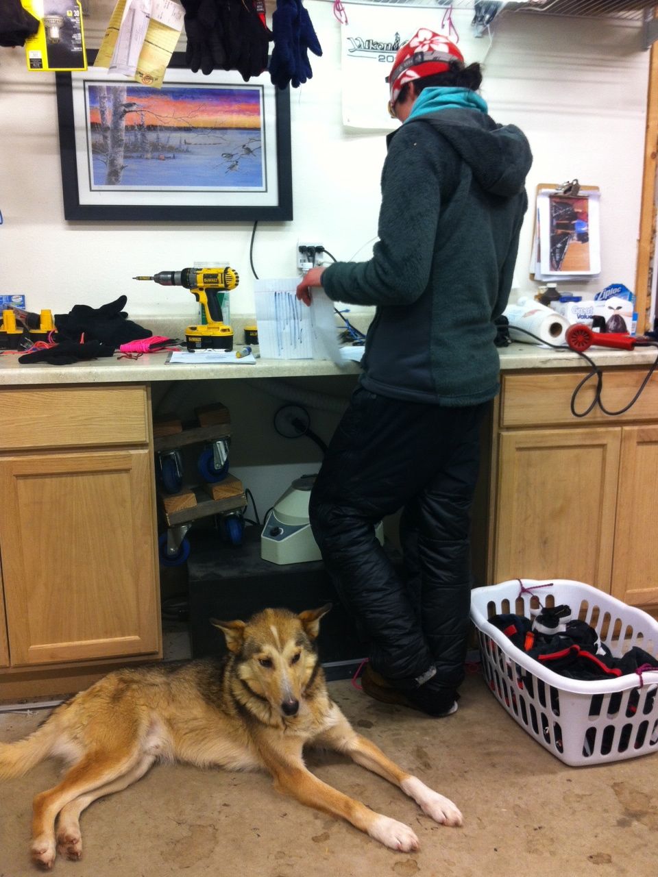 Meghan works on her never ending “to do” list, while Rambler relaxes.