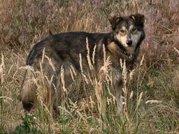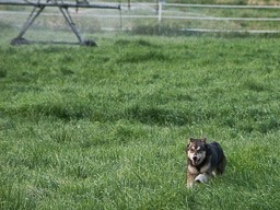 Boris runs thru the irrigated farm field; Posing for the camera