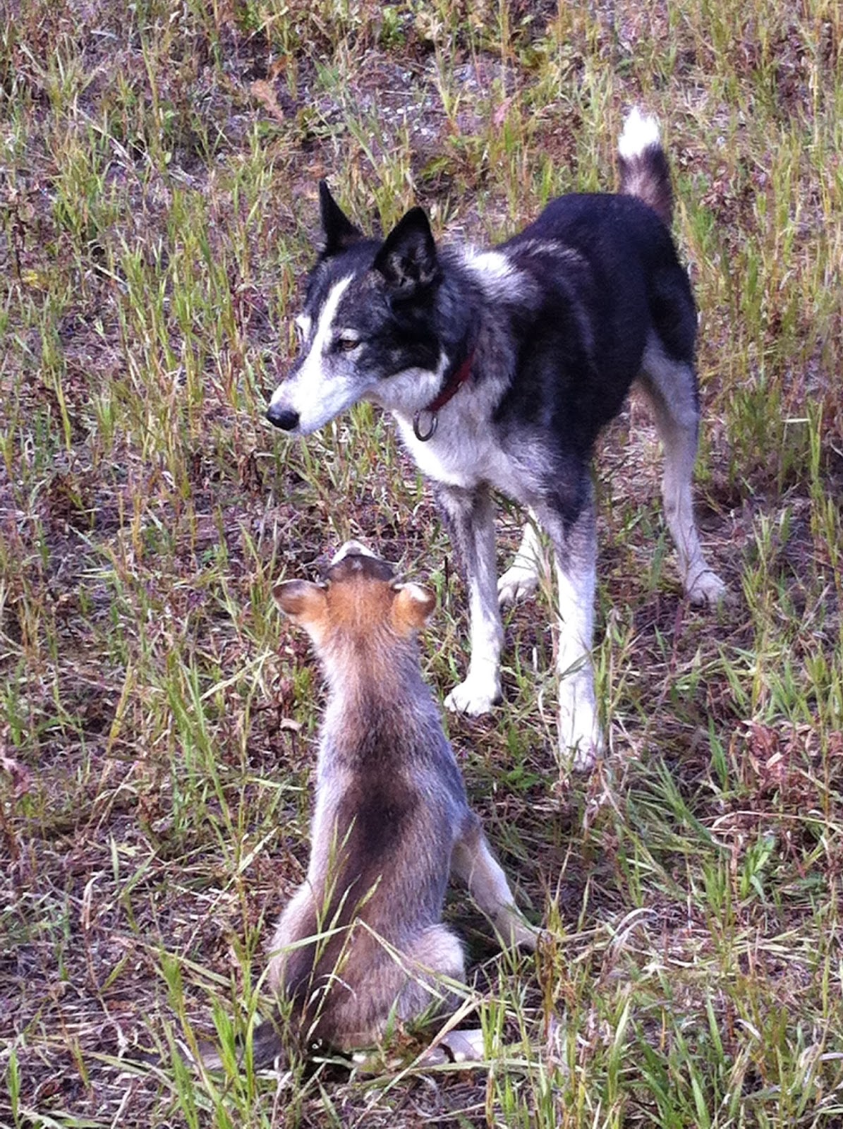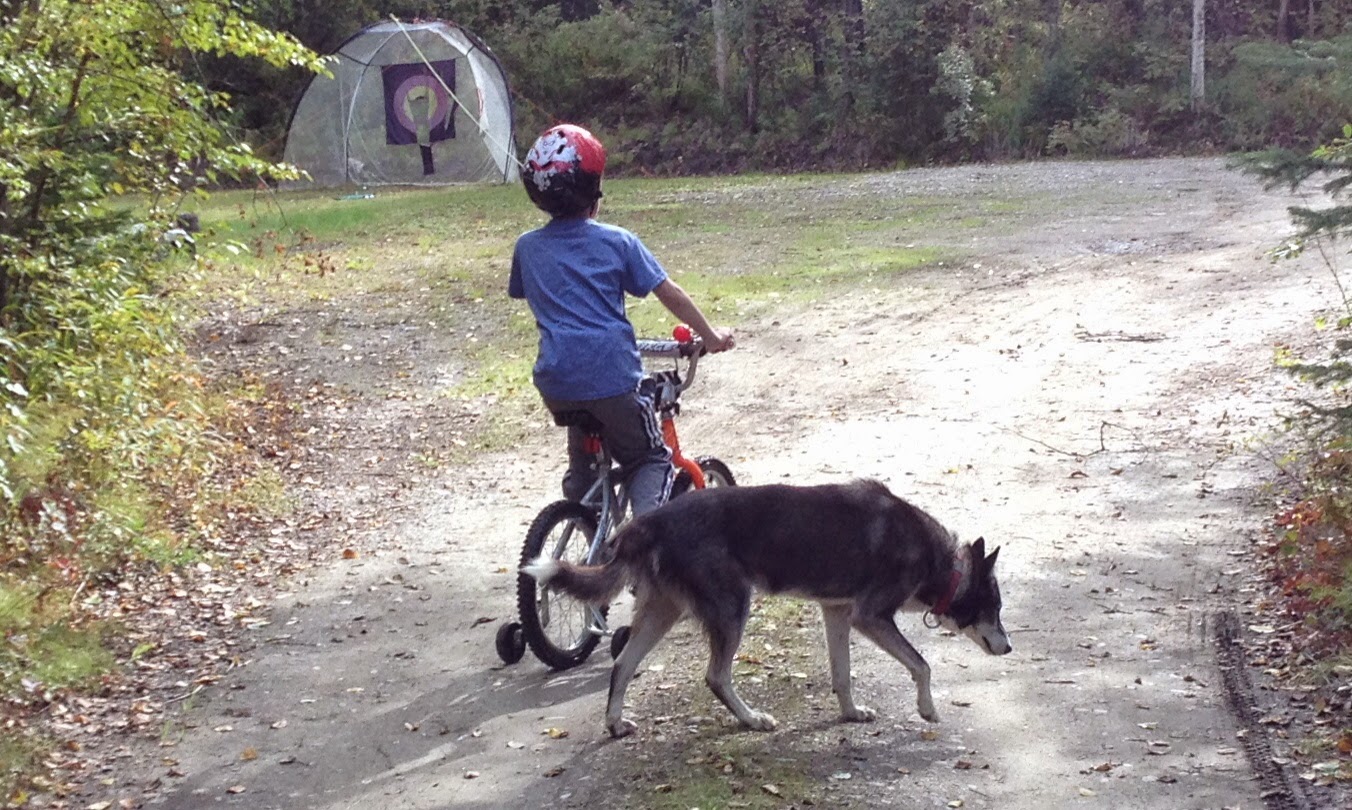 Now that Wes and Wendy are out of state for a month, Doug and I are enjoying Tony’s company and he is very much at home with us. He loves chasing grouse and butterflies around our yard. He loves jaunting around the neighborhood while Sammy and I ride our bikes. He has been helping us harvest the last of our veggies and get our little place ready for winter. And sometimes we visit the kennel, to keep tabs on Aliy and Allen.