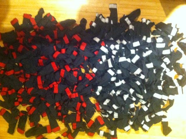 A pile of new booties; sorted into sets of four
