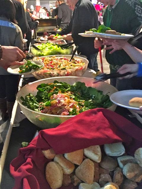 Part of the delicious buffet banquet dinner; dog tags for bib #1