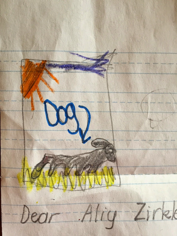 Thanks for sharing some of the wonderful letters. I love the one with the arrow saying "DOG" just in case you didn't recognize it! Great drawings. What matters most is so often role modeled by kids and dogs.