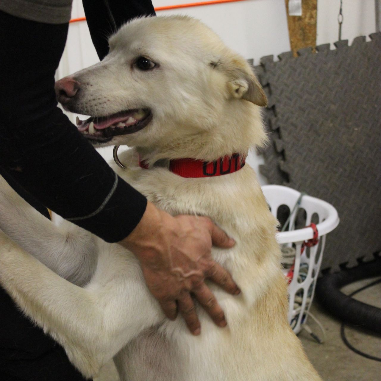 During the November’s fitness check and weigh in we switched out collars. Before doing so, we wrote each dog’s name in permanent marker and we attached their metal identification tags.
