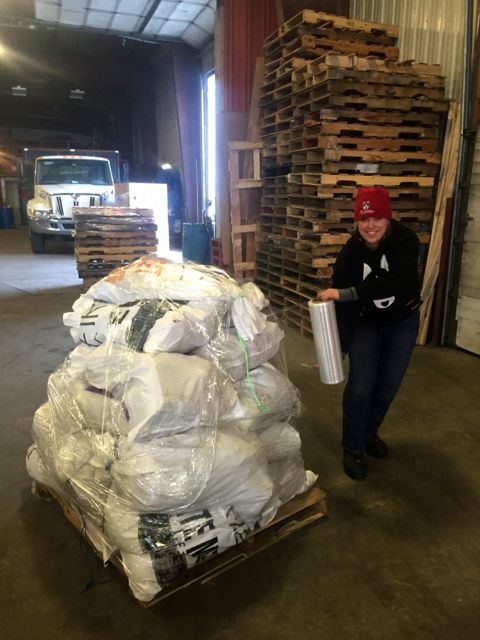 Mykena and Madi stack the pallets