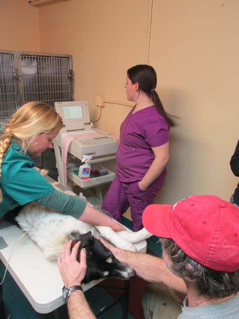 Next, each dog got an Electrocardiogram (ECG) that measures electrical function and heart rhythms and can alert the doctors to any anomalies that might rule the dog out of racing.