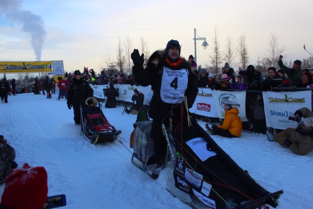 Scout cracks me up….Chaos is all around him…Waylon, Mismo and Schmoe are barking….Dutch is jumping for joy….all the dogs seem to be smiling and eager to go….and Scout is so calm….kinda looks like he is saying "really…..1,000 miles….with this bunch….Quito you lucky dog!!" Nice looking Team….they certainly have the enthusiasm, and the smarts with Scout in lead! Go Black Team!!