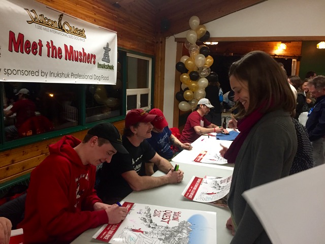 There was another tremendous turn-out in Whitehorse last evening as hundreds and hundreds of fans, supporters, sponsors and family queued to get signatures, selfies and handshakes with their favorite mushers.