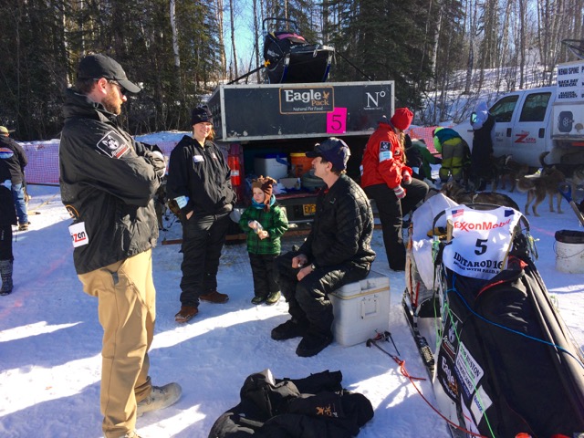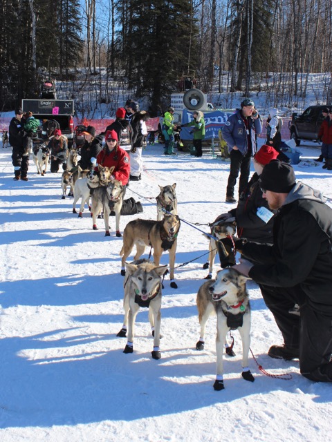 Saw them come into Finger Lake via Live stream video. They all looked good. If I got them correct Quito and Chena were still in lead. Lydia and Tinder got a little tangled up at the check in. I bet Allen had to stop right away to get them untangled. Hope neither got hurt.