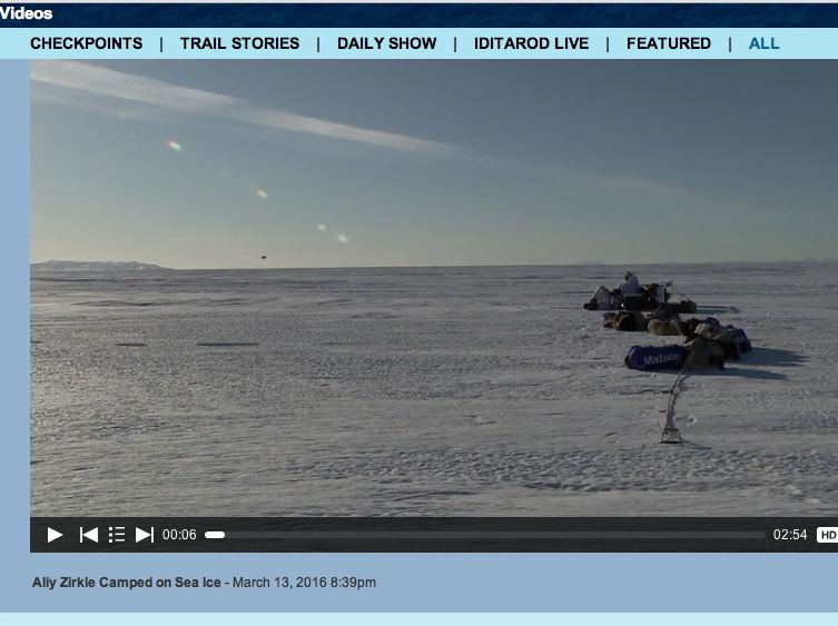If you are an Iditarod Insider you can watch the “Aliy Zirkle Camped on Sea Ice – March 13, 2016 8:39pm” video that they took of me during this camp out. You will notice that I was completely content and somewhat gleeful with this ridiculous situation. If you are not an Iditarod Insider I took a few still shots from the video and here is a little bit of the commentary: