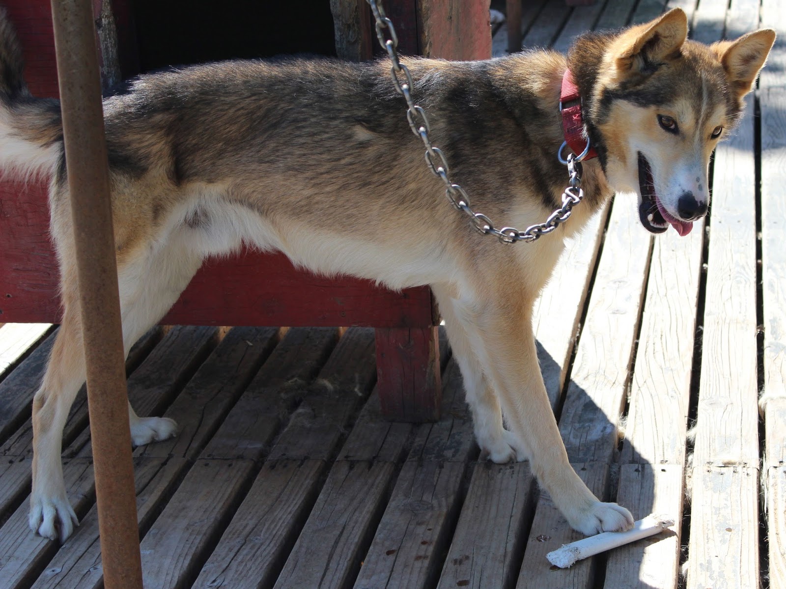 Torch: Is the lightest built dog of the litter and likes to travel fast. It will be fun to see who can keep up with him in the future. He did have a small ‘wheezing’ issue this Spring when the temperatures warmed up. We are hoping that this was something that he will grow out of over time. Torch is a very enthusiastic sled dog. He just wants to RUN!! Torch lives in the ‘Bachelor Corner’ of the yard with Hotshot. They both think they’re very sexy… in a Justin Bieber kinda way.