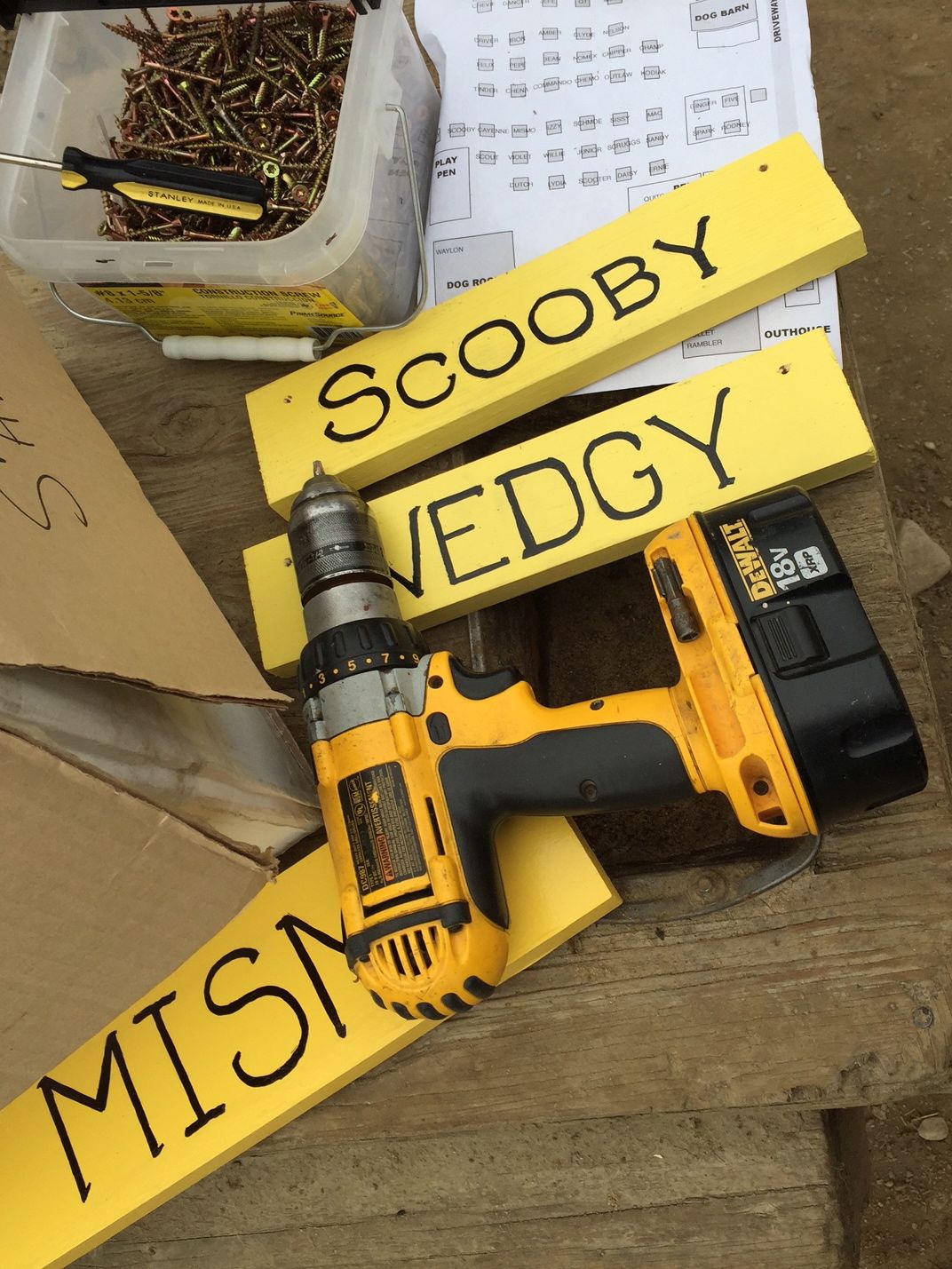 New name plates are sorted ‘carefully’; A dog yard map – just in case you get lost. HA! –