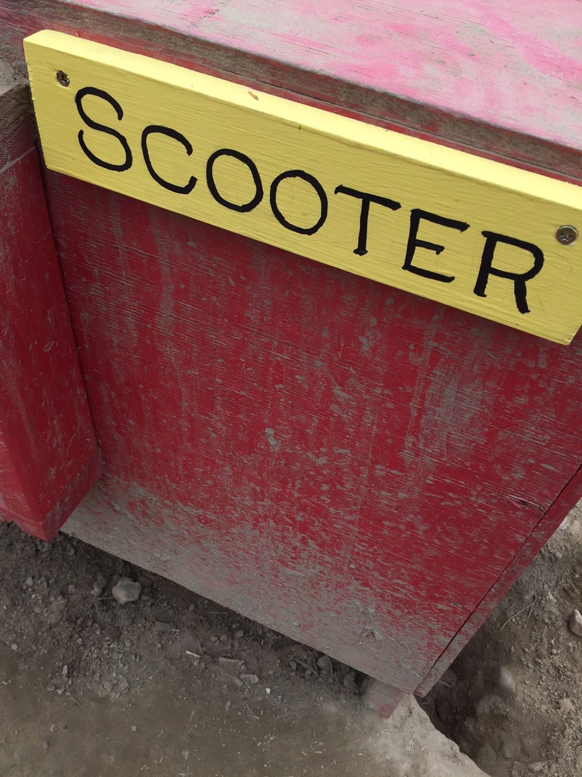 Anyhow, name plates are great and helpful. But, because SP Kennel sled dogs are still actually dogs (chew chew chew), they do not last for years and years. The rain, snow, sleet and dog teeth get the best of many name tags annually. It is a big task to cut, paint and write the dogs’ names (legibly). That task has fallen on Aliy’s Mom, Mickey, for the last 10 years. She takes it seriously and sprays the completed signs with a shiny gloss protecting.