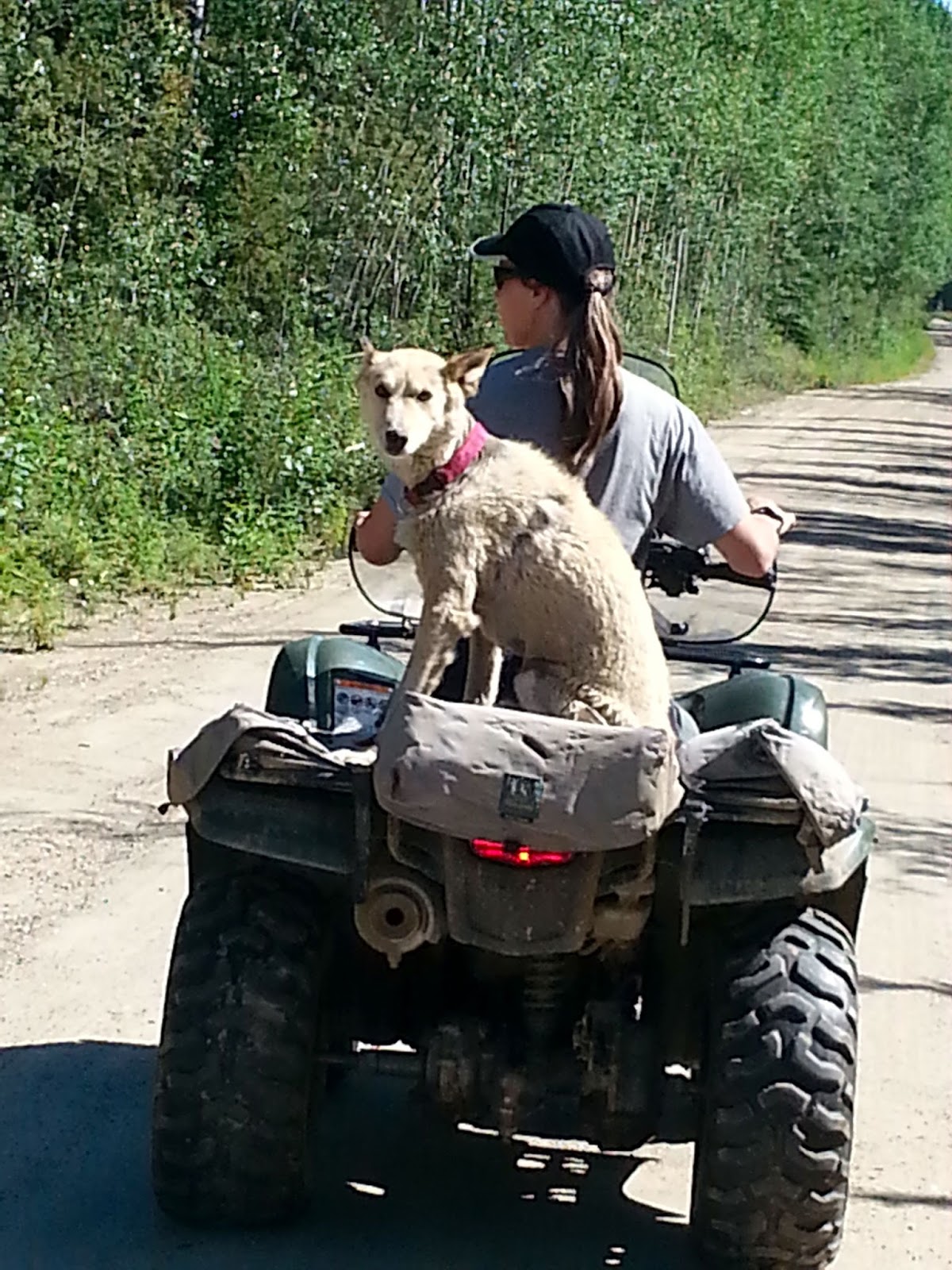 So great you take him out and keep him in the mix of what is happening in the kennel and wind in his face on the atv. Sweet boy!
