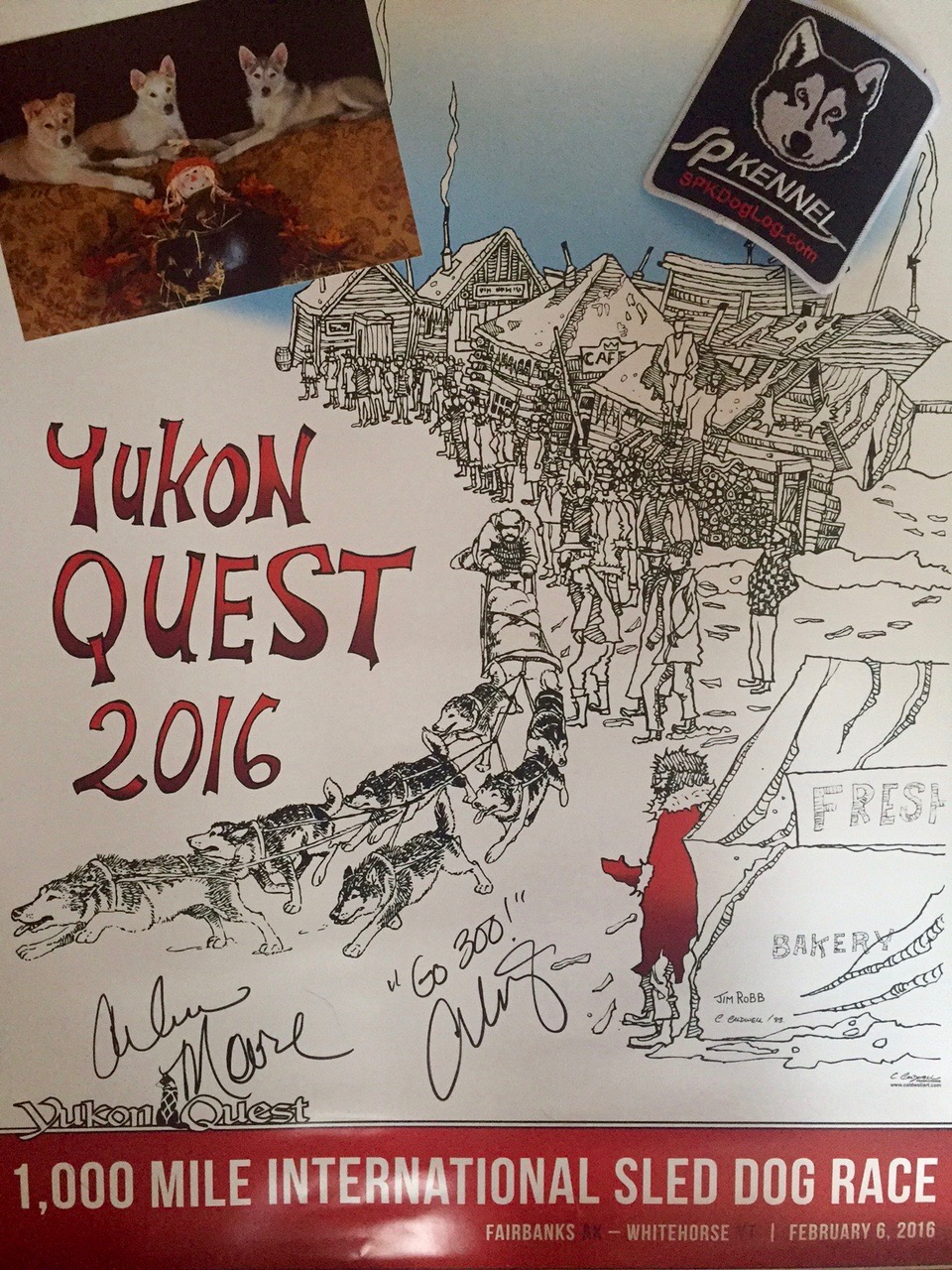Cindy wins a signed copy of the 2016 Yukon Quest race guide, a glam shot of future Yukon Quest dogs Gold, Prata and Bronze plus an SP Kennel badge. She will also get a photo print portrait of Iron. We hope you enjoy your packet Cindy!