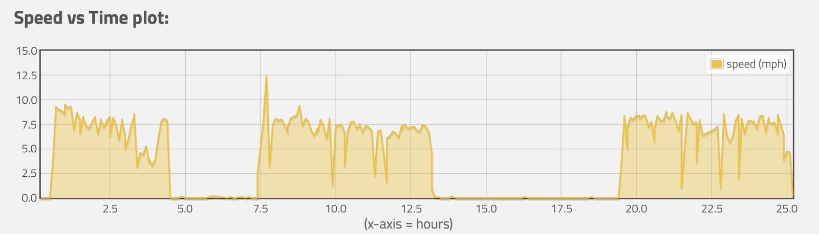 The trackleaders.com trackers give us loads of great information to see what’s going on. In the view below you can see when, and for how long, the team stops in checkpoints or at their camp spot. You’ll see they camped for around three hours then their next stop was at Yentna checkpoint for the mandatory six hours plus time differential (the extra time lower bib numbers take to correct for the staggered start). The little ‘dips’ in the tracker are likely to be when he stopped the team to snack or replace a bootie or something and the tracker updated right at that moment.