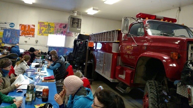 There is a huge welcoming committee up in Circle to greet them. Allen daughters Bridgett and Jennifer travelled up early this morning and joined handler crew Mark, Chris, Ruth and Padee so there are plenty of upbeat, happy faces to greet them. After a long cold night on the river that would surely perk anyone up!
