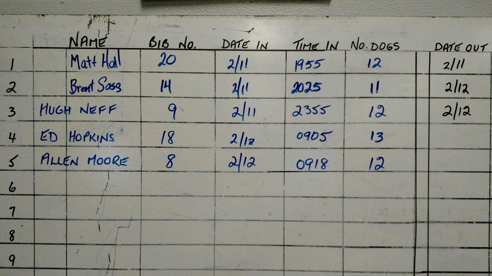 After that challenging run, Allen must have been especially pleased to see his two daughters great him. Sounds like there is some handler truck karaoke going on to pass the time. So happy that the dogs are feeling better now.