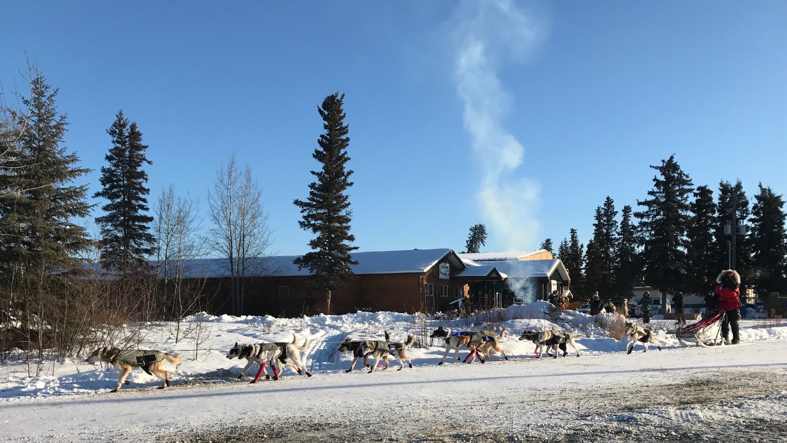 At these “short” rests the dogs will get almost the entire time to rest and eat but Allen will be “taking one for the team” as he prepares a meal for them and sees to all their needs before he can rest. The shorter the stop basically means the shorter the musher sleeps as the chores take the same amount of time whether you stop for two hours or six. He will be running on next to no sleep by now but will get to replenish in Dawson City.