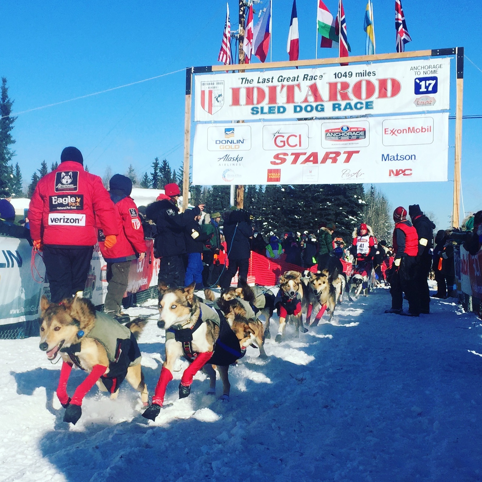 Congratulations and thanks to all the friends, family and handlers who got my two favorite mushers off to a great start on the race and for keeping all of us far away so well updated. May the teams have safe and wonderful trips this year and best wishes to both my human and canine heros from a devoted fan in Colorado. Go red and black!!