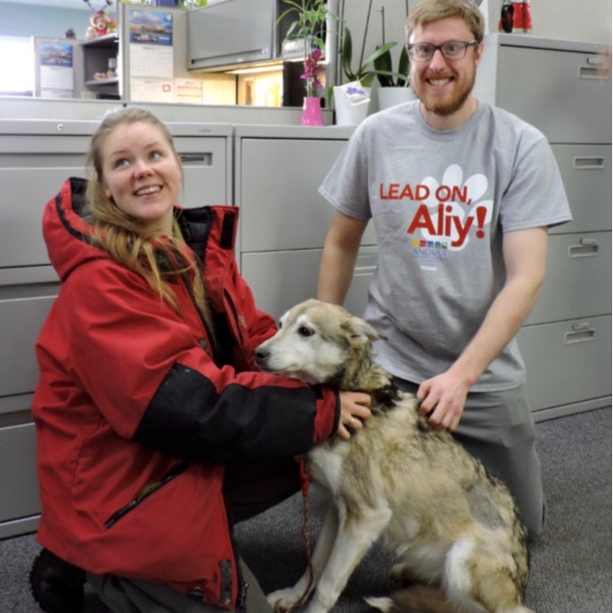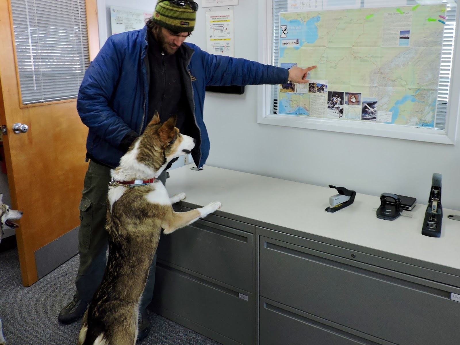 One of our Iditarod traditions is to take a couple of dogs and a few of the crew to the Matson Shipping office at the Port of Anchorage to say hello. Today Allen, Junior, Quito, Chris and Ruth met with the team down there and had a fun, social time.