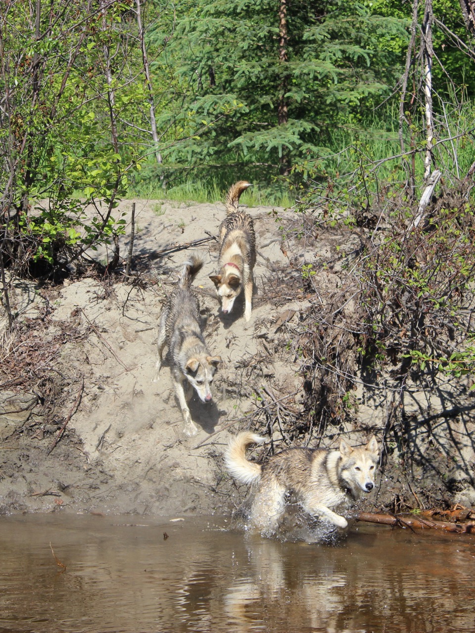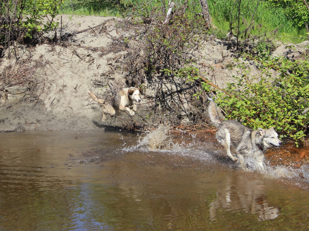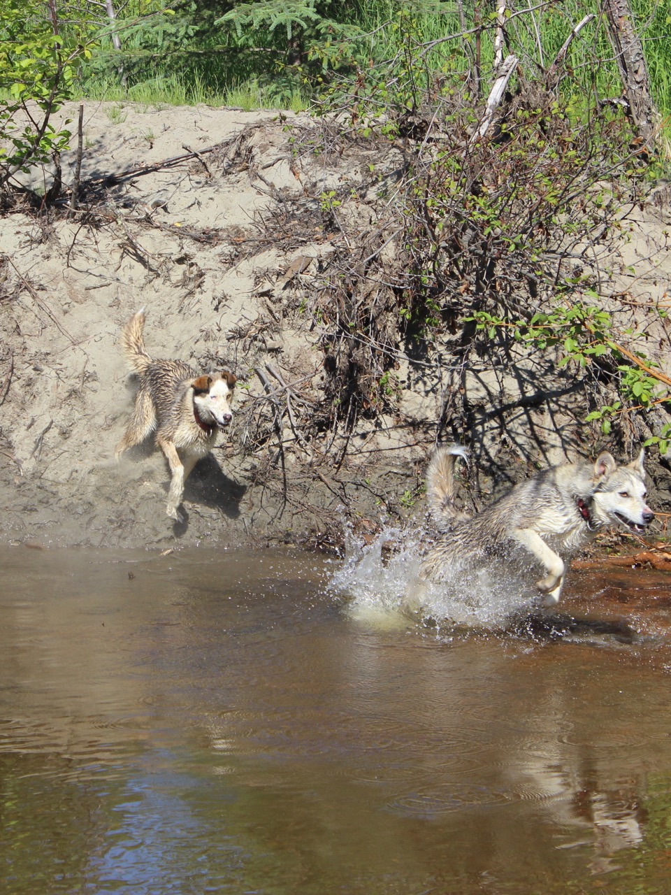 Bummer about Scruggs…keeping the faith he will be found! Maybe he would follow Tinder home like Decaf and Bean! Cute pics…nice to see husky pups liking water!