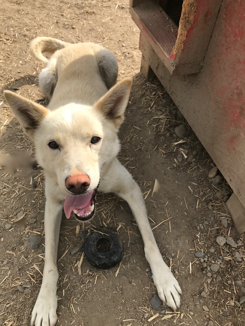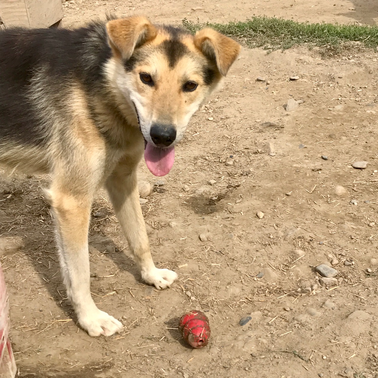 This summer the dogs have voted and their favorite chew toy is without a doubt a big red Kong. Everyone one seems to loves the Kongs. To be honest, the toys are surprisingly tough. In one month the dogs have only semi demolished 25% of them. The Kongs are also fun because they bounce around the dog yard without intent. In other words, as the dogs wrestle and play with the Kongs, they also unintentionally toss them to their neighbor or distant kennel mate – this “sharing” depends on how enthusiastically the original dog was playing. We’ve seen a Kong shoot across the yard when Ernie jumped on it! Mismo tends to keep his Kong to himself. Sanka often tosses her Kong to Tinder. Scooby keeps his Kong in his mouth 99% of the time – even while barking! His muffled bark sounds like his cartoon namesake’s trademark howl….. “Scooby Doobie Doo!”