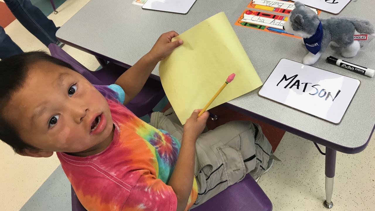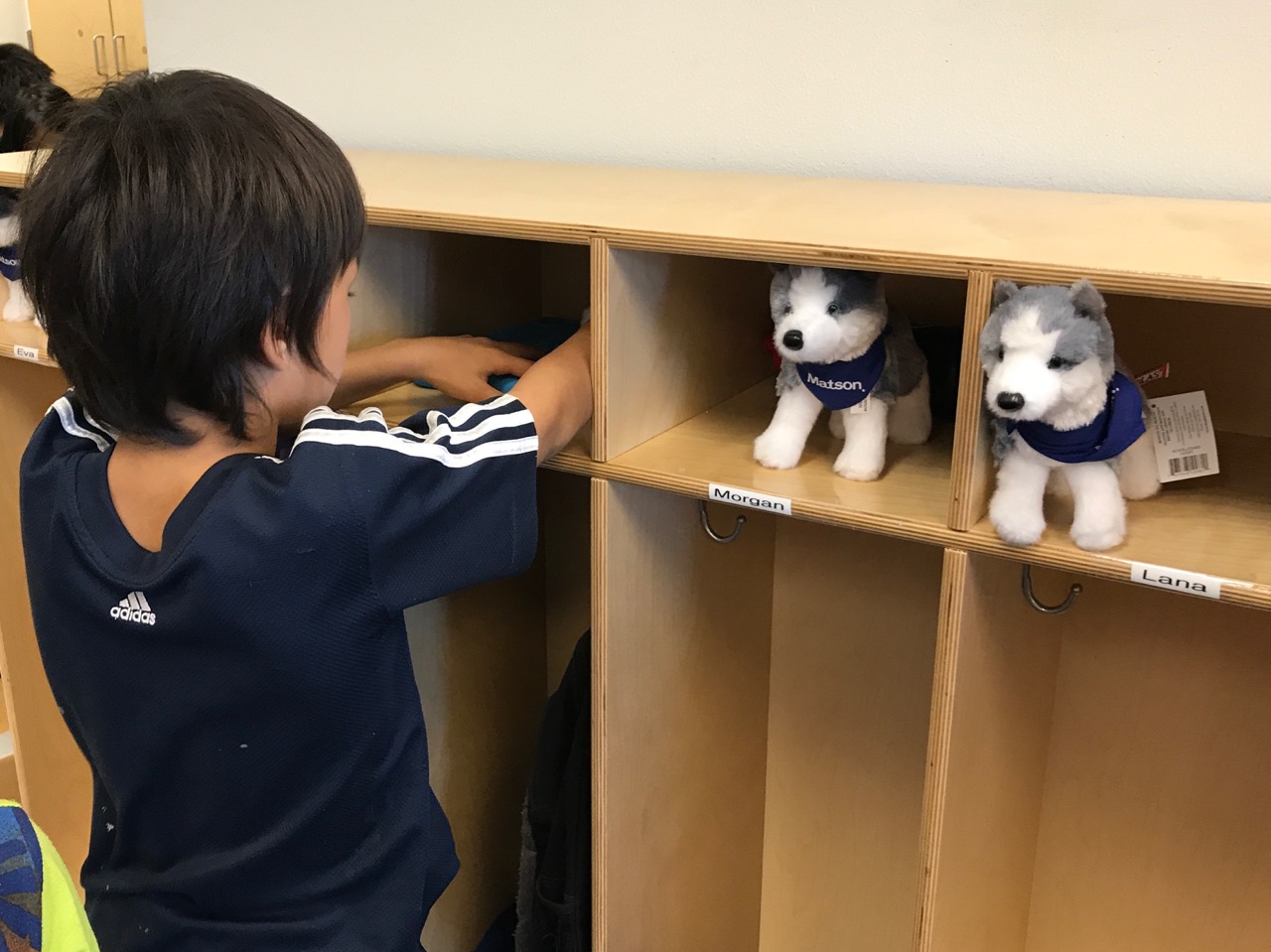 After naming my dogs, I handed out a stuffed toy husky to each youngster K to 2nd grade (we had enough for Golovin and Elim.) The deal that I made with most of the youngsters is that they had to come up with a name for their pup. Then they could only bring home their pup if they wrote its name on a sheet of paper and gave it to me. Fair, right?