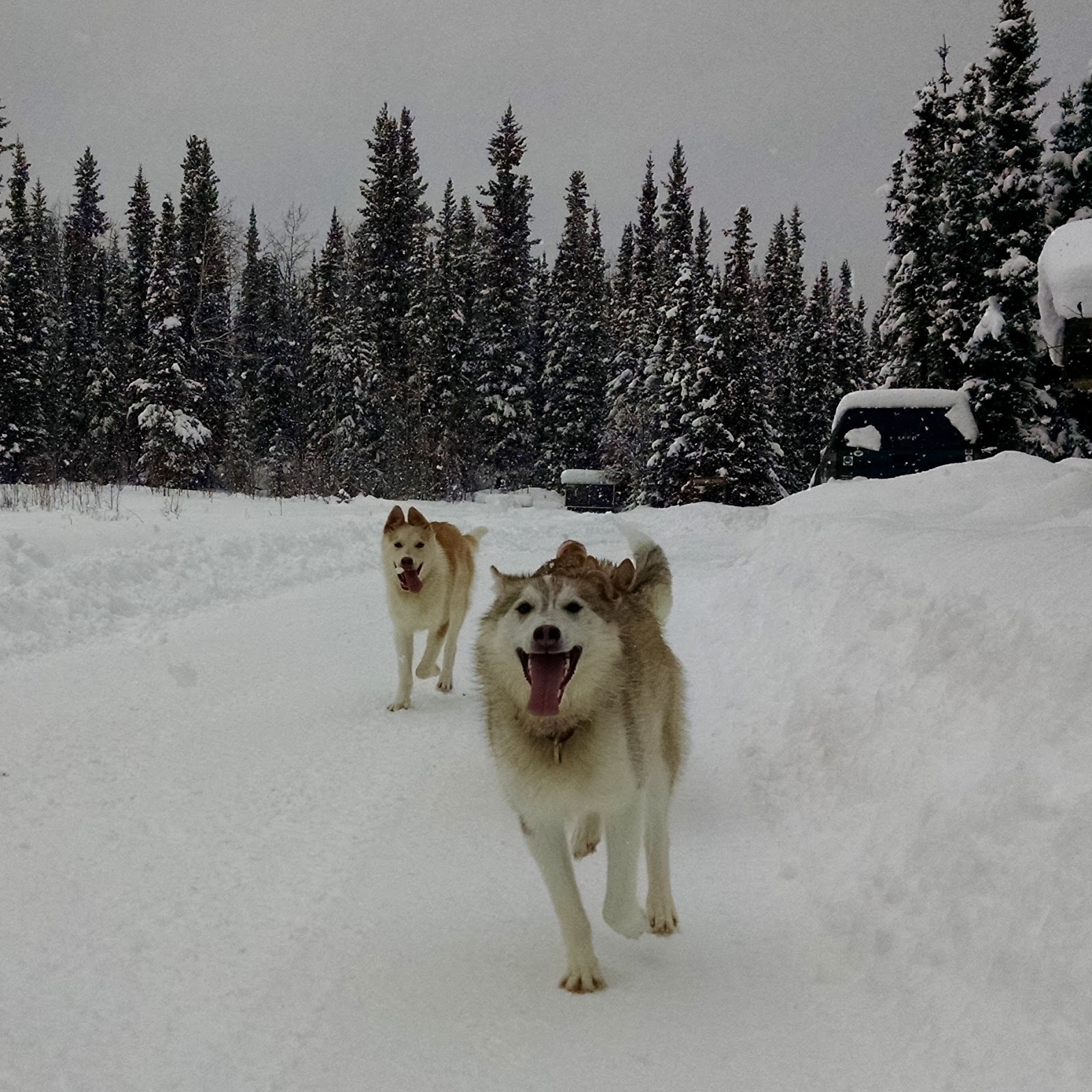 Woody and Violet are now with Margie at her kennel in Knik. It is a beautiful spot there and they get to have their own space. They’re doing well – they seem happy and having had a couple days rest their soreness is mostly gone. They ate a nice meal and are settling in for a sleep.