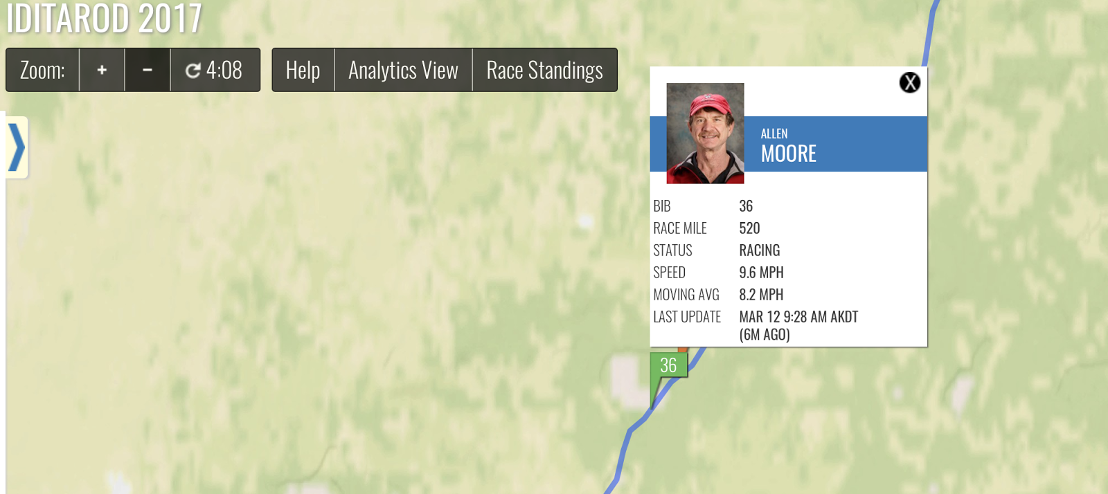 They are currently 25 miles outside of Huslia and we expect them to camp along the trail at some point. Allen may break it into half with two 45-odd miles runs like he did the Galena-Huslia stretch or go a little further, blow through Koyukuk and head straight for Nulato. Or he may choose another option – I really don’t know.
