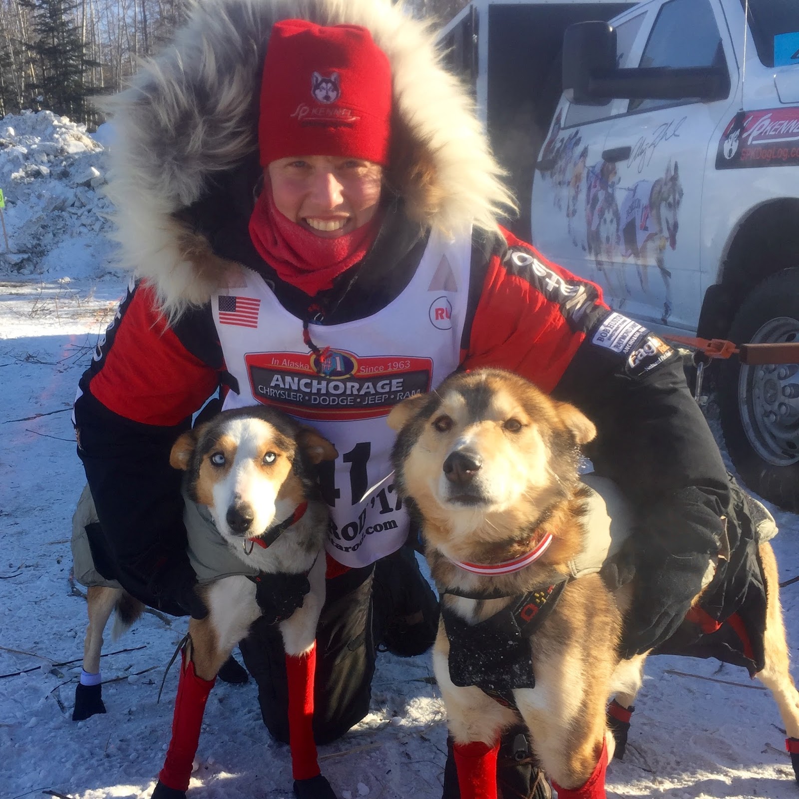 There is a great Insider interview with Aliy at the Musher Banquet in Anchorage where she talks about how you have to be flexible with your strategy on this unfamiliar section of trail, depending on run times and trail conditions and how important it is to run your own team. When challenged about that, about saying only “run my own team” she retorts “Oh no, I want to beat Dallas, I want to beat everyone! I want to run my own team but I want to beat them. Without a doubt, I’ll be honest, I want to win this race, and I’m going to try really hard to win it“.