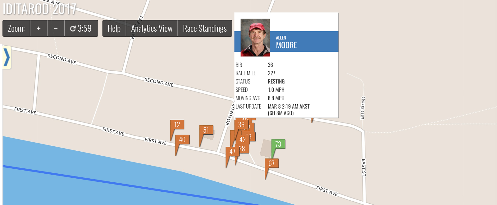 In an Insider interview with Allen in Nenana he describes the conditions right then as “perfect” and the warmer it gets the slower the dogs will go. He said to combat that he might have to run more at night but it all depends on where they are and what’s happening. As with Aliy, he said there are a lot of factors to consider.